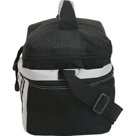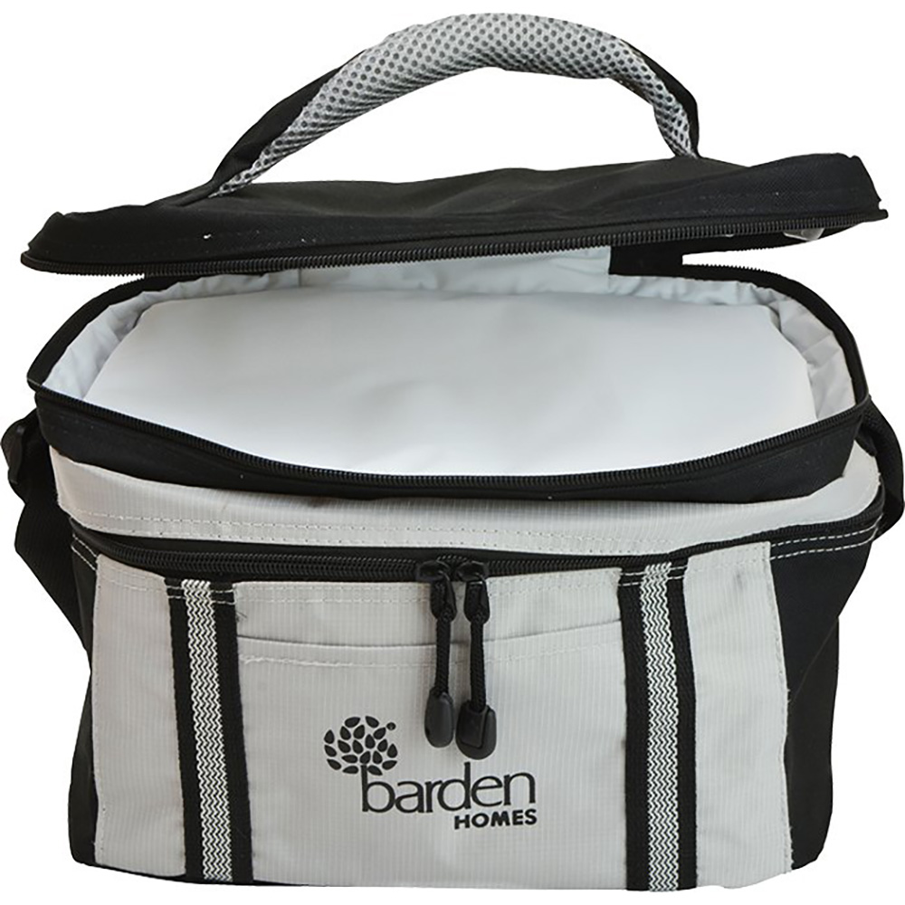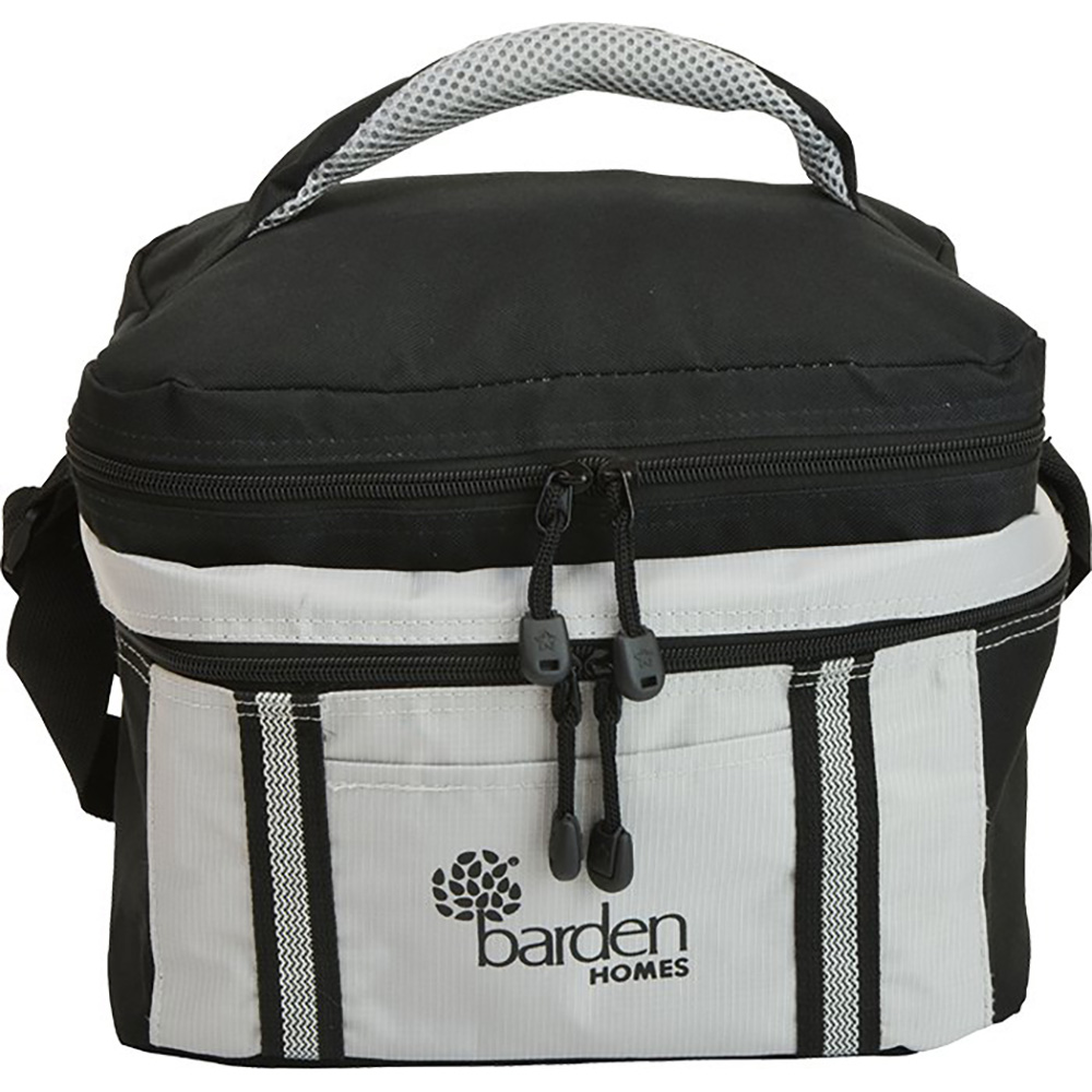 This unique two compartment design with top dry storage and lower cooler compartment. Will hold up to 12 cans plus ice. Features 600D Polyester and ripstop with PEVA lining. Has an adjustable shoulder strap, front slash pocket for extra storage and air mesh carry handle for extra comfort. Product dimensions: 9" x 11.5" x 8" - 1.05 lbs. Price includes one colour imprint, one location. Imprint dimensions: 3" x 2". Free art proof will be emailed with every order within one business day. Order at least 25 items. Within 3-day printing. In 3 colours.