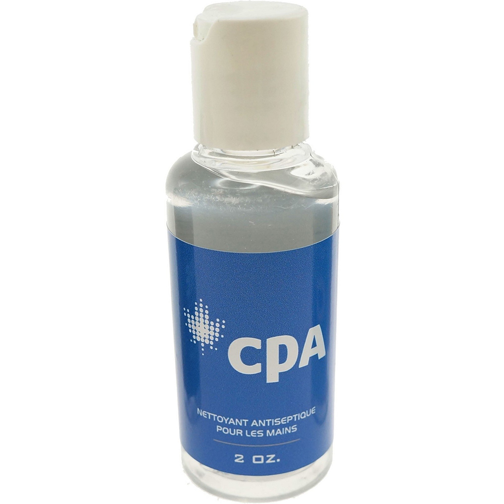 59% Alcohol. This 2 oz. bottle dispenses alcohol hand cleanser in a gel form giving it a significantly lower evaporation rate and a longer shelf life. Refreshes hands without leaving a sticky residue. Perfect for schools and hospitals! Use our four color process to customize these cleansers with a vivid representation of your company name and logo. Complies with Prop 65. Price includes full color imprint.