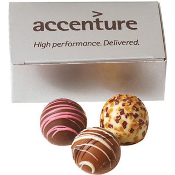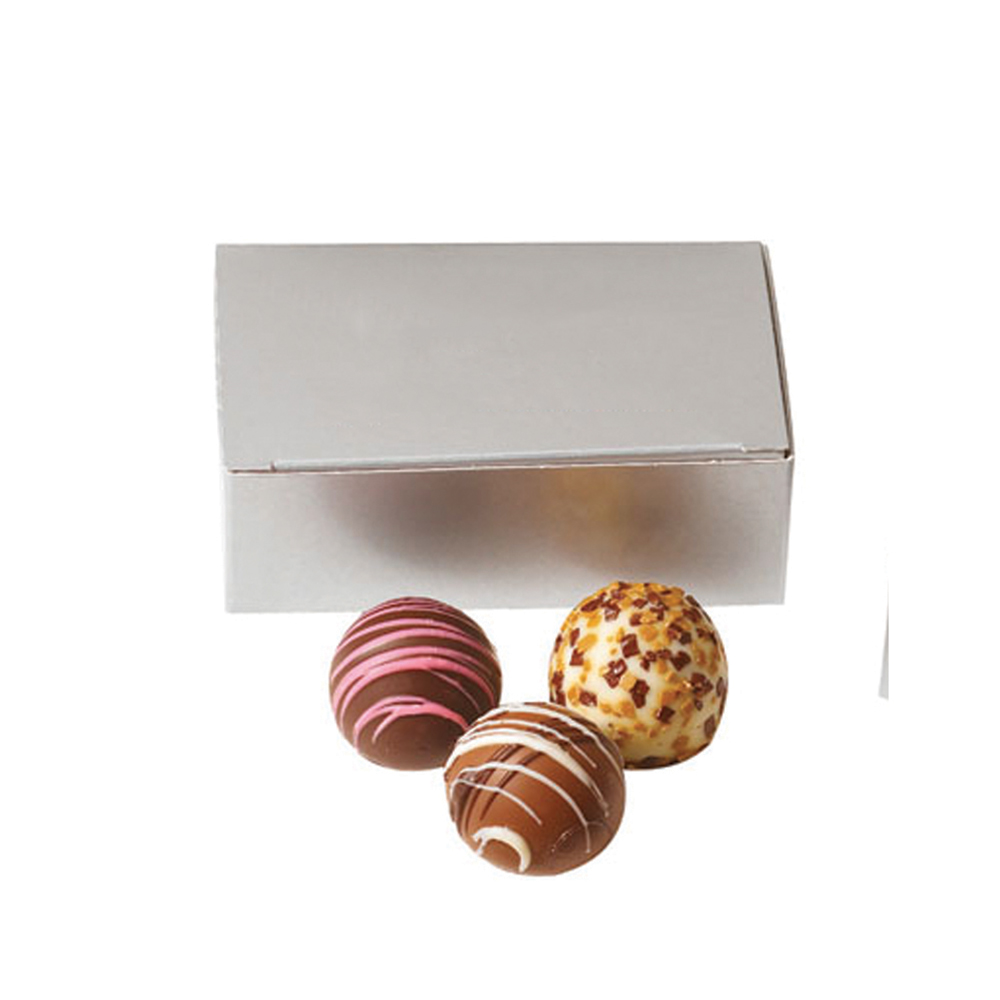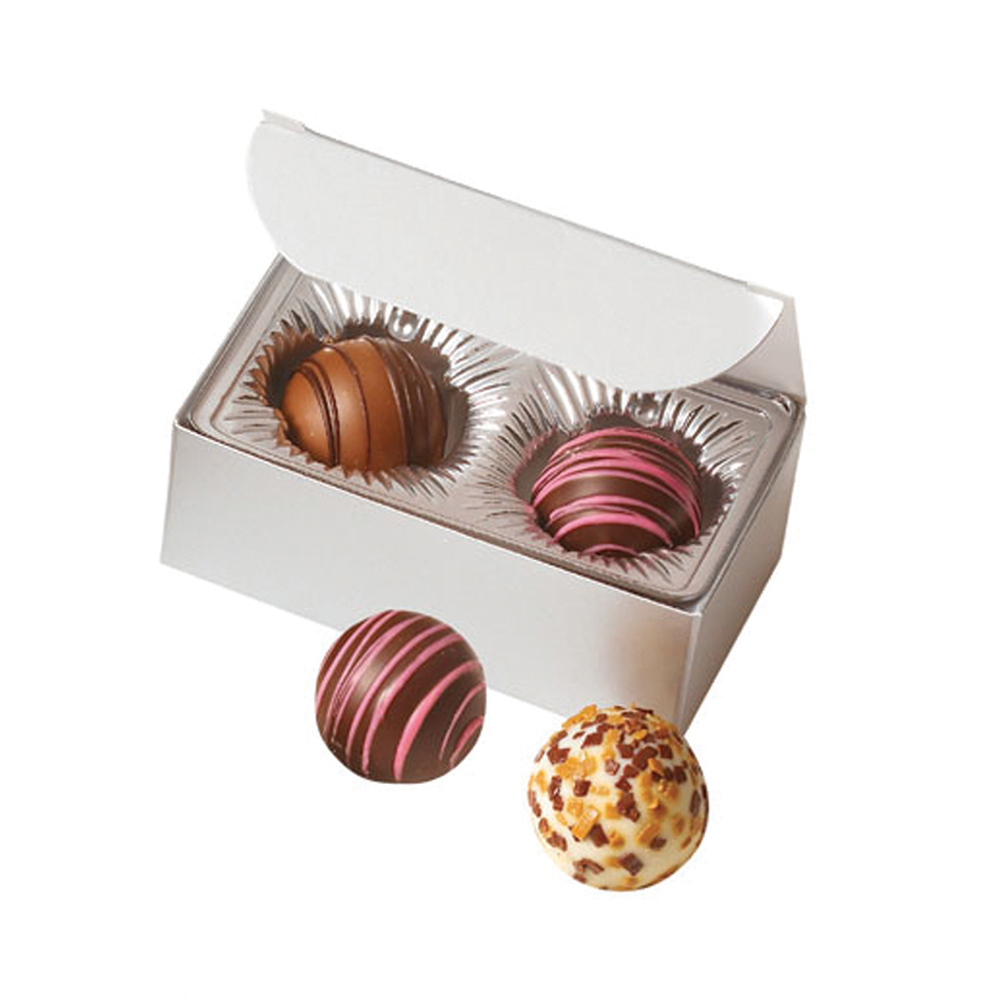 Thank each customer for their continued business during appreciation events or holidays with this sweet treat! The decadent flavor filled truffles sit in a checkered pattern inside this elegant metallic gift box with matching stretch bow. Box is filled with 2 assorted truffle flavors .Imprint the box with your foil stamped logo. Also makes a superb amenity for hotels, spas and upscale boutiques.