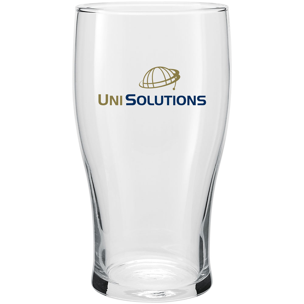 20 oz pub glass. Hand wash recommended. Microwave safe with non-metallic imprint. Hand wash recommended. Price includes one colour imprint.