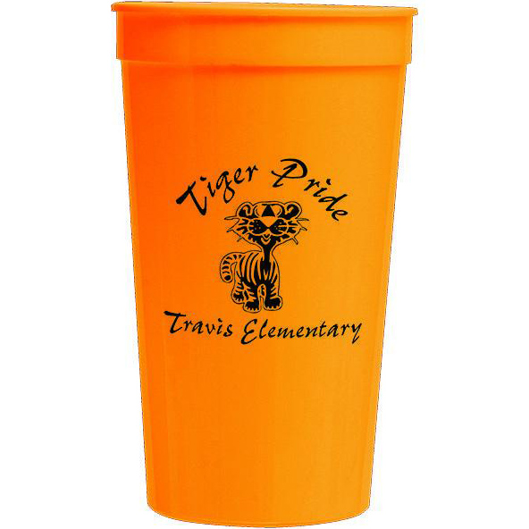 Stadium cup made with polypropylene. BPA free. Made in the USA. This cup offers tons of room for your favorite drink, packaged candy or even business cards. If you are looking for a unique way to display your item, consider placing it inside a complimentary custom stadium cup with your very own logo. Price includes 1 color imprint.