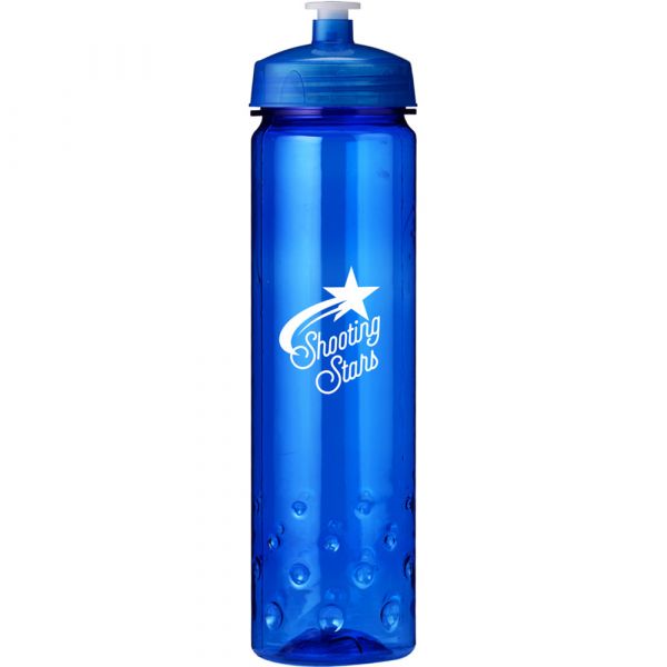The PolySure Inspire bottle is a budget-friendly hydration companion. Its sleek cylindrical body with a bubble design stands out, while the wide mouth ensures easy ice cube insertion. All our PolySure water bottles are crafted in the USA using imported resin. This bottle has a high-gloss finish and a leak-resistant push-pull lid. Holds up to 710 ml. (24 fl. oz.) Hand wash only for longevity. BPA-free. Elevate your hydration game with this American-made essential! Food-grade PET bottle has a distinct thin cylindrical body with a bubble design. Wide-mouth design makes it easy to add ice cubes. Features a high-gloss finish and a leak-resistant push-pull lid. Made in the USA with imported resin. Hand wash only and BPA free. Food Grade Pet.
