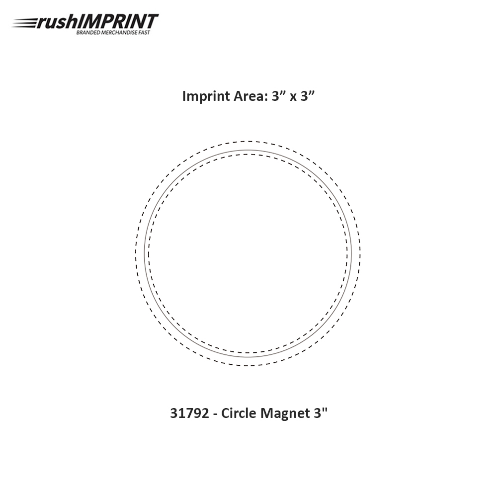 Model: 31792 Circle Magnet 3 Product Description The perfect promo for colorful brands who want to stick around! These magnets are made of tough and reliable 10 mil paper face material with a protective laminate seal. Includes a brilliant, full-color imprint, standard, at a great price point. Size: 3"h x 3"w Imprint Area: 3"h x 3"w Request A Virtual Proof Choose Quantity View Price Breaks Quantity Price 500 $0.37 1000 $0.35 2500 $0.33 5000 $0.32 10000 $0.30 Enter quantity or drag slider. Minimum quantity is 500. Quantity: Price Each $0.37 Setup Charge: $0.00 Subtotal $185.00 Savings: $ over minimum qty pricing Choose Your Quantity Quantity Price 500 $0.37 1000 $0.35 2500 $0.33 5000 $0.32 10000 $0.30 Standard Production Time: 7 business days Select Delivery Date Enter Postal Code Apply Loading... Choose a Shipping Method -- Loading Shipping Prices -- Customize it! Upload Your Art Now Or Send it Later. Select Imprint Colour(s) Back to Edit Product Color And Quantity Where on the item should we print your design? 3" x 3" Available print design areas 3" x 3" Quantity: 500 Add Your Artwork Add Artwork Add Now Send After Checkout Don’t have artwork? That’s ok! Artwork is not required to start a job. Simply skip this step and email us artwork later (info@rushimprint.ca). If you need assistance with your art, our designers can help with that too! Will I be able to approve my design before it goes into print? Yes! You will receive a digital mock-up of your artwork on this item within a few hours of placing your order. We will send your order into production only after you approve the mock-up. Only Image Aa Only Text Aa Text/Image Contact Us Enter Your Text Choose file Uploading logo. Please wait... Personalize your design by adding text and customizing its shape with a curve. Upload your logo to give it a professional touch, and combine these elements to create a one-of-a-kind design that’s uniquely yours. Open Product Designer Don’t have artwork? That’s ok! Artwork is not required to start a job. Simply skip this step and email us artwork later. If you need assistance with your art, our designers can help with that too! Will I be able to approve my design before it goes into print? Yes! You will receive a digital mock-up of your artwork on this item within a few hours of placing your order. We will send your order into production only after you approve the mock-up. Free art proof will be emailed with every order within one business day Total (loading...) qty x Set Up Shipping Cost Rush Charge Custom Fields Hazmat Fee Estimate arrival Savings Add to Cart Updating Price...