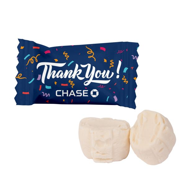 Wrapped red striped buttermints. Easy to put in a purse or a pocket, your customers and guests will be reminded of your company name every time they pull these out! Add a company logo or message and place these treats out on a reception desk Priced per case of 1000.