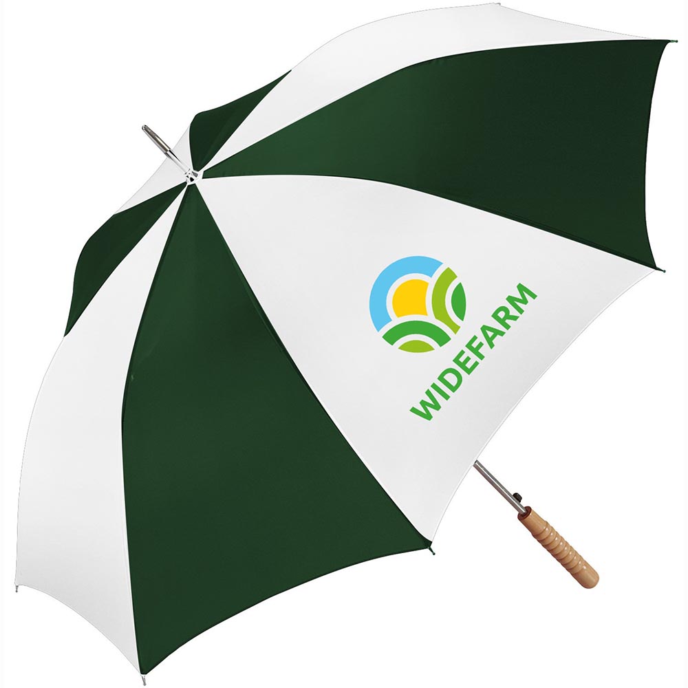 Take a look at this perfect promotional item for any outdoor event! The Stick umbrella is available in a variety of colors to meet the needs of your business concept or marketing campaign. Features include an automatic opening, 48″ arc, steel shaft, heavy metal tips and a straight wood handle. This classic item has unique style and flair that will brighten up any rainy day! Fabric Material: Nylon. Shaft Material: Steel. Handle Material: Wood. Handle Style: Straight. Umbrella Mechanics: Automatic Open. Price includes one color, one location imprint.