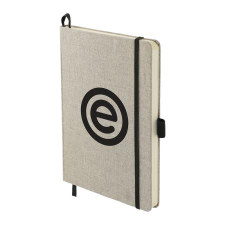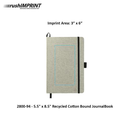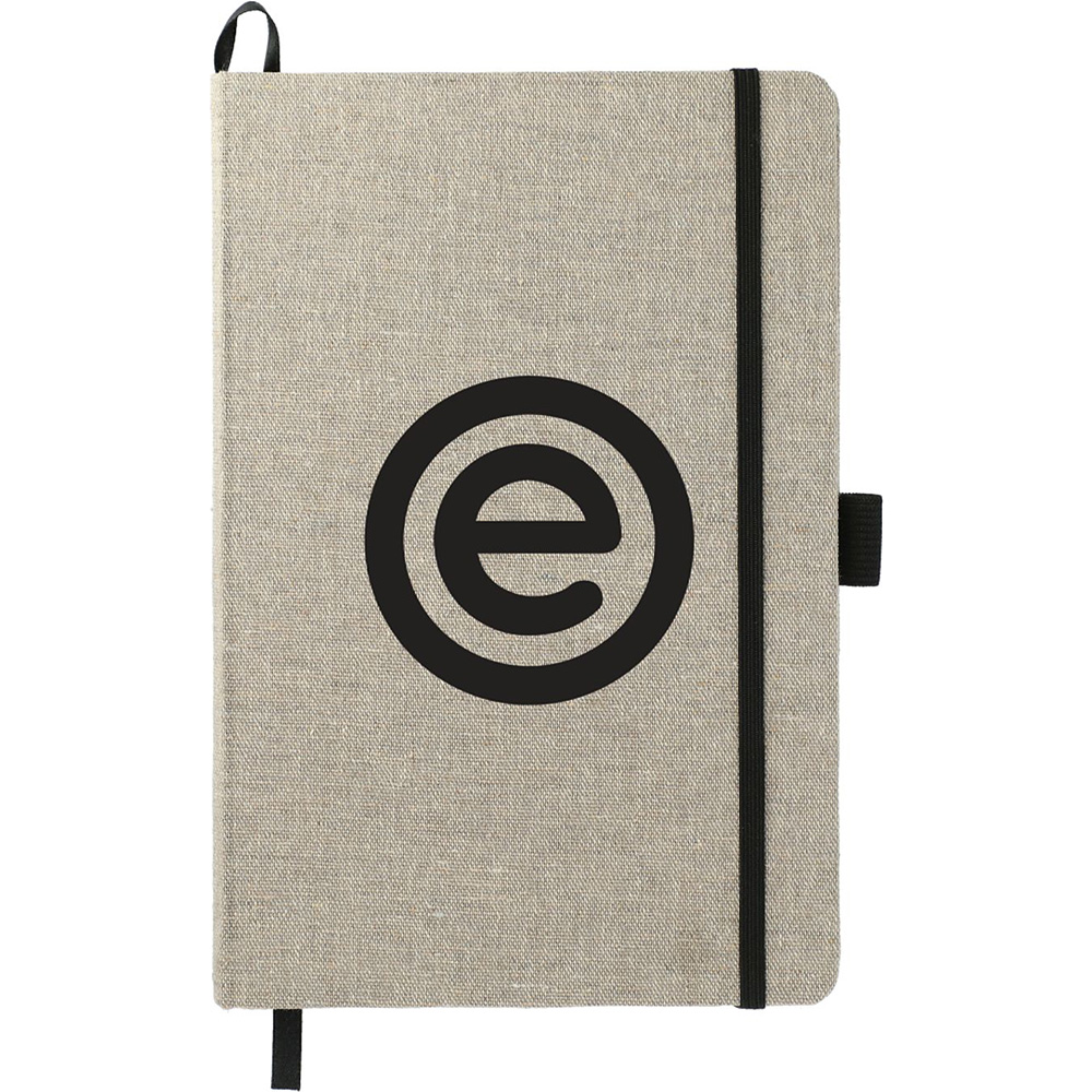The 5.5" x 8.5" Recycled Cotton Bound JournalBook is perfect for all of your notetaking needs. Features a hard cover made from recycled cotton. Natural color elastic closure, pen loop and ribbon page marker. 80 sheets of FSC Mix cream lined paper. Back document pocket. FSC label printed inside. Through a partnership with 1% For The Planet, one percent of sales of all EcoSmart products are donated to environmental nonprofits. Price includes one colour, one location imprint.