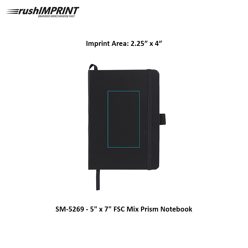 The 5" x 7" FSC Mix Prism Notebook features a FSC-certified paper scratch-resistant cover and 80 sheets of FSC recycled white lined paper. Includes color-matched ribbon, elastic closure and elastic pen loop. Through a partnership with 1% For The Planet, one percent of sales of all EcoSmart products are donated to environmental nonprofits. Price includes one colour, one location imprint.