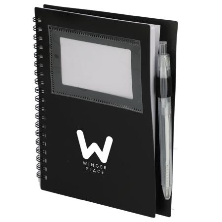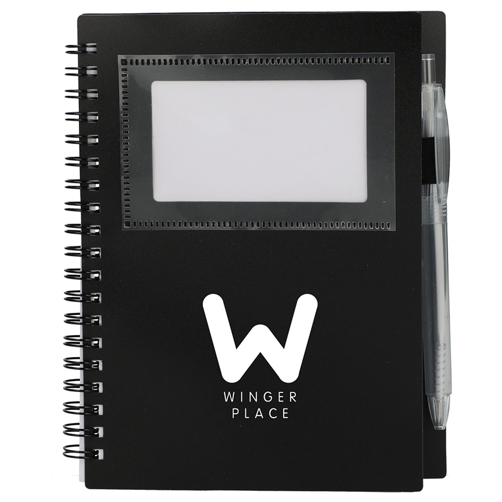 Discover the sustainable essence of the 5" x 7" FSC Recycled Star Spiral Notebook and Pen. Featuring a recycled PP cover adorned with a front card pocket, this notebook combines eco-friendliness with practicality. Inside, it houses 70 pages of FSC-Certified recycled paper, offering a responsible canvas for your notes. What sets it apart is the integrated pen loop and the included RPET pen boasting a smooth 1.0mm tip and an impressive 300 meters of blue ink