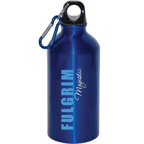 Aluminum. Holds up to 500 ml (17 oz.). Safe alternative to plastic for your health and the environment. Black plastic twist-off cap. Matching coloured carabiner with key ring included. BPA free (Bisphenol A) and FDA Compliant. Price includes one colour, one location imprint.