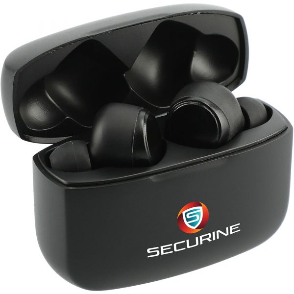 The A'Ray True Wireless Auto Pair Earbuds with Active Noise Cancellation are the future of Bluetooth earbuds. As you see, there is no wire connecting the earbuds. The earbuds feature Bluetooth 5.0, Auto-Pairing, Auto Power-On, and Active Noise Cancellation. Once the earbuds are removed from the case, they will power on and automatically sync to each other! No more hassle of trying to get the earbuds synchronized to each other. The charging case also doubles as a powerbank for your earbuds and can be charged with the included Micro USB Cable. Once the battery of the case is charged, it will charge the earbuds 4x from 0-100%. With over 4hrs of playback time at max volume on a single charge these earbuds are a must for any traveler. The ergonomic design of the earbuds keep them in place on the go. The earbuds have built in "touch" music controls and dual microphones for hands free operation. It takes 1.5hrs to charge the earbuds from 0-100%. The case can be charged in 1.5hrs. MATERIAL: ABS Plastic. Price includes one color, one location imprint.