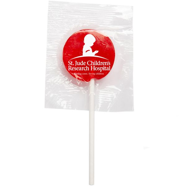 A best seller for banks, this wrapped ad pop allows you to share your message on a variety of American made, flavored lollipops! Perfect for tradeshows and corporate outings, these customizable candies are only available in assorted flavors. Flavors include: lime, orange, grape, cherry and lemon. These lollipops come in an oval or round shape. This non-melt product is perfect for your next promotion! Available imprint on either wrapper or stick. Some breakage will occur during shipping. Please allow for overages. Price includes one colour, one location imprint.
