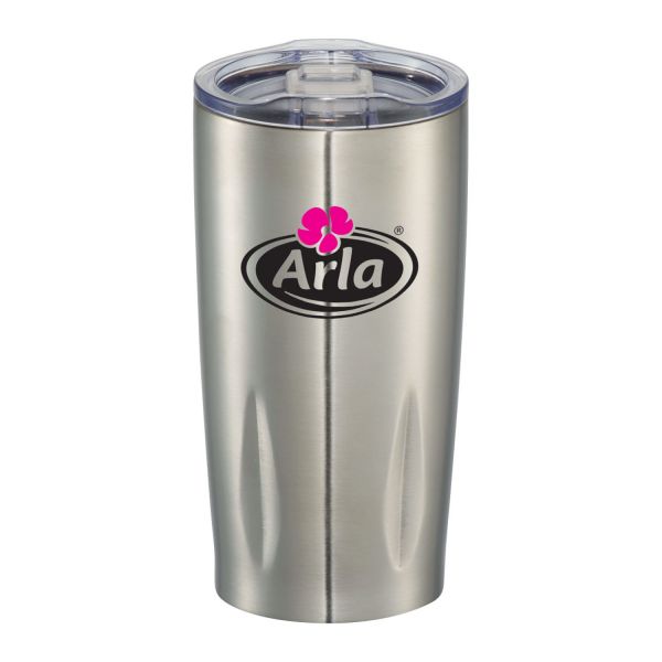 Do not miss the most trendy tumbler of the year. Durable, double-wall stainless steel vacuum construction, which allows your beverage to stay cold for 15 hours and at least 5 hours for hot beverages. The construction also prevents condensation on the outside of the tumbler. Push-on lid with anti-spill slider closure. Wide opening for comfortable filling and pouring. Design features the geometric bottom with grooves. PCNA Exclusive. 20oz. Material: 18/8 GradeStainlessSteel. Price includes one color, one location imprint.