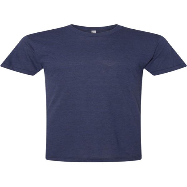 4 oz., 50/25/25 polyester/cotton/rayon. Triblend Oatmeal is 50/37/13 polyester/cotton/rayon. Relaxed fit. 7/8" non-topstitched collar. Taped neck and shoulders. 1" blind-stitch sleeve hem. 1" double-needle bottom hem. Side seams. Double-satin razor label.