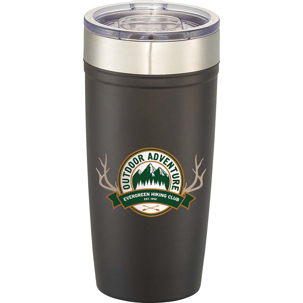 Do not miss the most trendy tumbler of the year. Durable, powder spray color. Double-wall 18/8 grade stainless steel vacuum construction with copper insulation, which allows your beverage to stay cold for 24 hours and at least 8 hours for hot beverages. The construction also prevents condensation on the outside of the tumbler. Easy sipping, push-on lid with slide closure. Wide opening for comfortable filling and pouring. 20oz. Leeds exclusive. Laser engraving silver Drinkware will result in a subtle, tone on tone decoration. Material: 18/8 GradeStainlessSteel. Price includes one color, one location imprint.