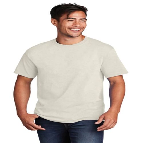 Screen Print, 9.1-oz, 100% cotton. Compacted yarns to minimize shrinkage. Taped neck and shoulders. Tear away label. 90/10 cotton/polyester. 50/50 cotton/polyester. Price includes a one color imprint on left chest.