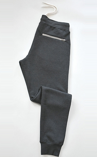 13-oz, 50/50 cotton/polyester fleece. Ring Spun Cotton. Compacted yarns to minimize shrinkage. Flat elastic waistband with contrast drawstring. Contrast back zipper pocket. Front pockets Modern styling with tapered leg. Rib cuffs. Anti-Pill. Price includes one color, one location imprint.