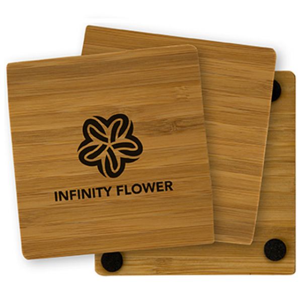 Durable square coaster made with earth friendly bamboo. Wood grain appearance will vary on each piece. Four rubber feet on the back to protect surfaces. Each piece is unique, due to the natural woodgrain of the product. Price includes one colour, one location imprint.