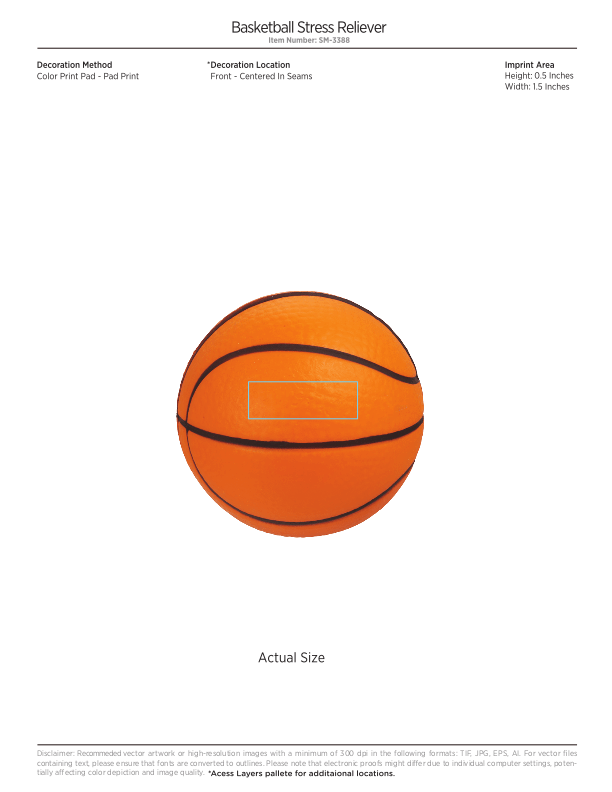 The Basketball Stress Reliever is made of polyurethane, squeezable foam that is perfect for relieving tension. This customizable stress ball is great for sports fans and compact enough to keep on a desk at the office or dresser at home. Although every effort is made for imprint consistency, we cannot guarantee a uniform imprint on each piece. These products are not intended for use by children under the age of 13.