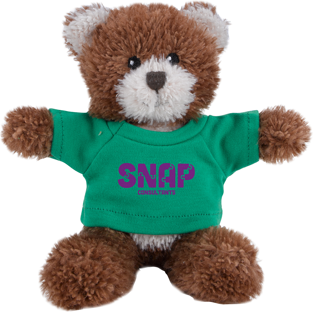 Baxter is a plush toy with a bandana and small T-shirt, CPSIA-rated for safety for all ages. Bandana. CPSIA rated for ages 0+. Small T-Shirt. Price includes one colour, one location imprint.