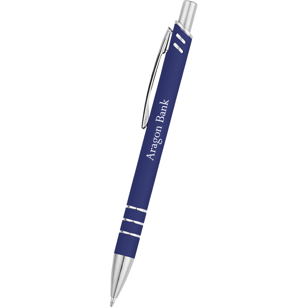 Plunger Action. Rubberized Aluminum Pen. Price includes one colour, one location imprint.