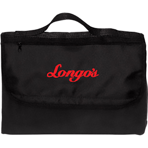 11.5” W x 7.5” H x 4” D (folded). 230 gram Fleece blanket. 600D Polyester flap with zippered pocket. Perfect for an outdoor recreational event. Folds up and closes with Velcro. Webbed handle for easy carrying. Debco's lowest priced blanket/carry bag. Price includes one colour imprint, one location.