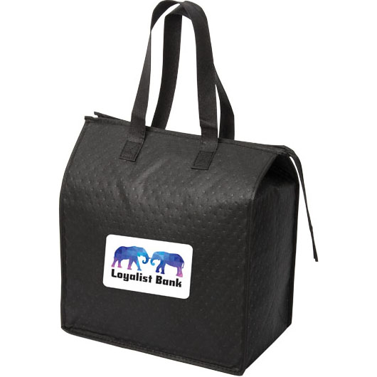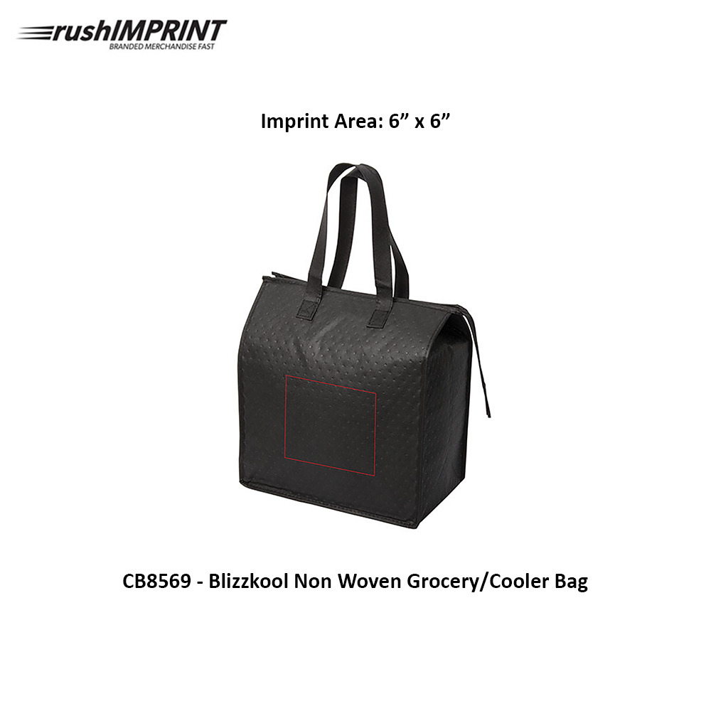 Upgraded Non woven 90 gram Polypropylene. Inner 2mm foam insulation with foil lining. Top zippered closure. Reinforced self-material handles. Drop in an ice pack (not included) and keep your drinks and food cold. Perfect for carrying frozen products home from the grocery store. Price includes one colour, one location imprint.