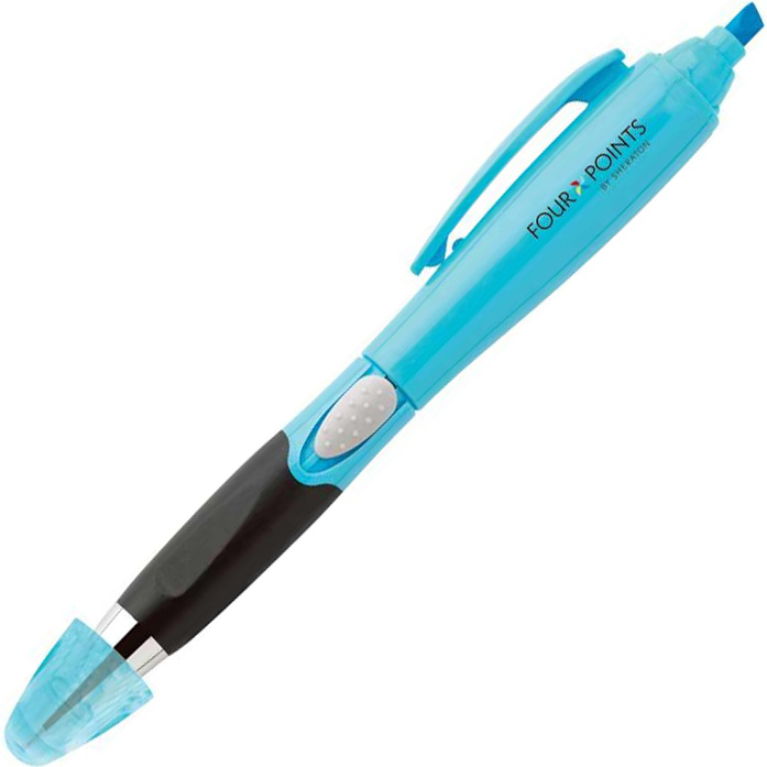 Blossom ballpoint plastic pen/highlighter with chrome trim, black comfort grip, slide-action pen function and matching coloured highlighter tips. Ink Colour: Black. Full colour process available on white only. Price includes one colour, one location imprint.