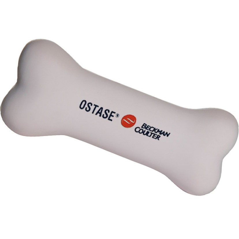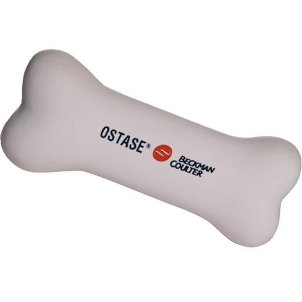 Bone - shaped custom stress ball - 1.25"x 4.5"- 0.1 lbs. In white colour. Imprint your company logo on this stress reliever with imprint dimensions of 1.75" x 0.75". Price includes one colour imprint. Free art proof will be emailed with every order within one business day. A minimum of 150 personalized stress balls in 7 days. No hidden fees!