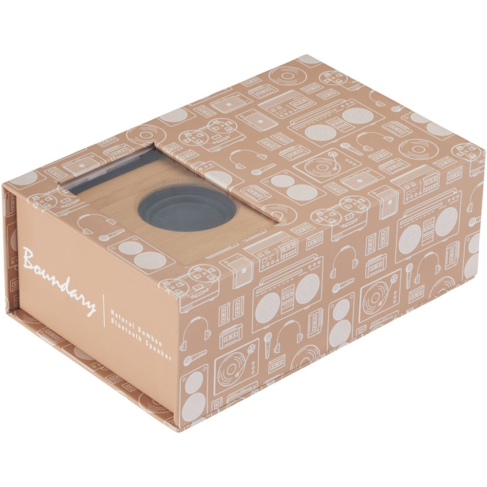 The Boundary Natural Bamboo Bluetooth Speaker contains a 2000mAh rechargeable lithium battery. It has a 3W speaker output and built-in music controls with a microphone for hands-free operation. This FSC Certified bamboo speaker comes in a retail-inspired gift box and includes a Micro USB charging cable. It charges in 5 hours using the included cable and provides up to 8 hours of playback at maximum volume when fully charged.. Features. Material: FSC Certified Bamboo. Charge Time: 5 hours. Playback Time: Up to 8 hours at max volume when fully charged. Bluetooth Version 5.0. Bluetooth working range of 33' (10m). 2000mAh rechargeable lithium battery. Price includes laser engraving.