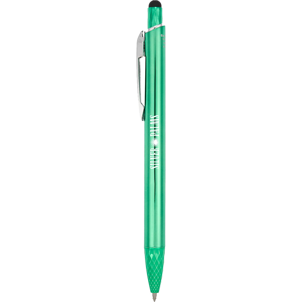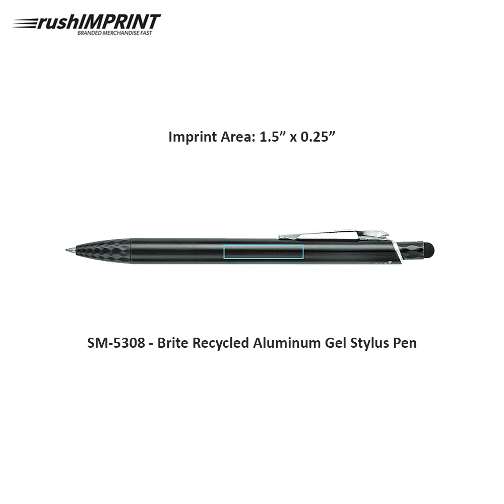 The Brite Recycled Aluminum Gel Stylus Pen brings sustainability and functionality together with a UV-coated barrel made from 94% recycled aluminum and a unique diamond-textured tip for a comfortable grip. This pen features a precise 0.5mm tip that provides 150 meters of smooth black gel ink, making it perfect for extended writing. By choosing this pen, you're supporting environmental nonprofits through our partnership with 1% For The Planet. Features: Diamond-textured tip - enhances grip and adds a stylish touch. 94% recycled aluminum barrel - UV-coated for durability. 0.5mm black gel ink tip - delivers smooth, precise writing for 150 meters. Stylus functionality - compatible with touchscreens for added versatility.