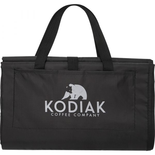 With a cozy fleece lining and waterproof exterior the Buffalo Plaid Fleece Picnic Blanket is perfect for the next outdoor occasion. This blanket is ready for those on the go as the trendy pattern folds up to a tote with carrying straps included. Blanket is 50" x 57" unfolded and 14.5" x 8" folded. Material: Fleece. Price includes one color, one location imprint.