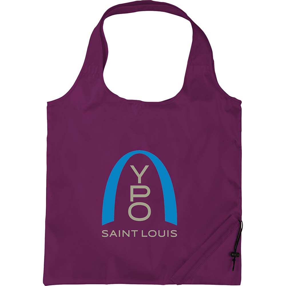 The Bungalow Foldaway Shopper Tote has an open main compartment with double handles and a unique fold-away function that gathers into a corner with drawstring closure. Material: 210d Polyester.