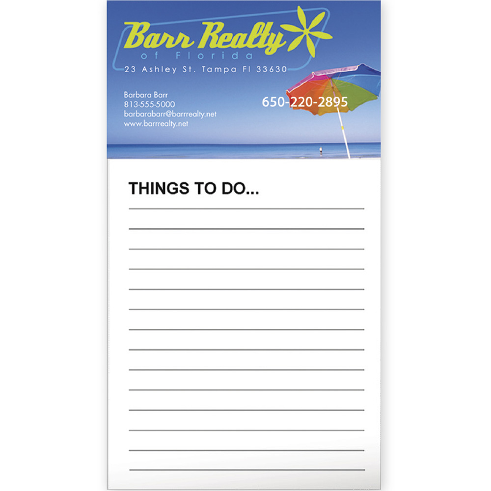 Pad Size: 4 1/4" x 3 1/2". Business Card Magnet: 2" x 3 1/2". House Shape Magnet: 2 9/16" x 4". Phone Shape Magnet: 2 3/4" x 4 1/4". Van Shape Magnet: 1 3/4" x 3 1/2". Price includes a FREE 4-colour process imprint on a white surface. Notepad cannot be custom imprinted. If not specified, a blank pad will be used.