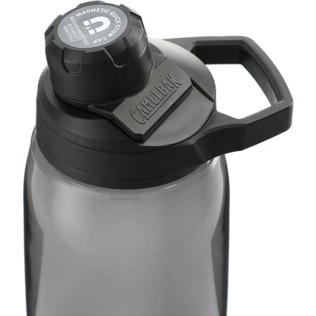 The CamelBak Chute Mag is made from Eastman Tritan RENEW, a durable and sustainable material containing 50% recycled plastic. The bottle is shatter-, stain- and odor-resistant, and its wide mouth makes it easy to fill or clean. The two-finger magnetic carry handle keeps the cap stowed while drinking, and the angled spout provides a high flow of water without sloshing or spilling. BPA-free. Leed's exclusive. 32oz. BPA-free Eastman Tritan Renew 50% Recycled Material. Price includes one color, one location imprint.