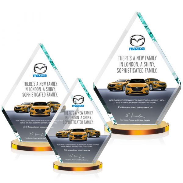 Our dramatic beveled diamond Starfire crystal with a clear starfire base featuring our vibrant full color VividPrint imprint.