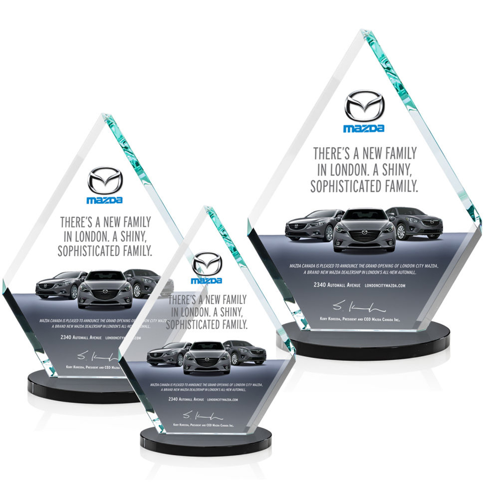 Our extraordinary double-sided beveled Starfire diamond award is combined with black crystal to update a classic look with chic style. Featuring our vibrant full color VividPrint imprint.
