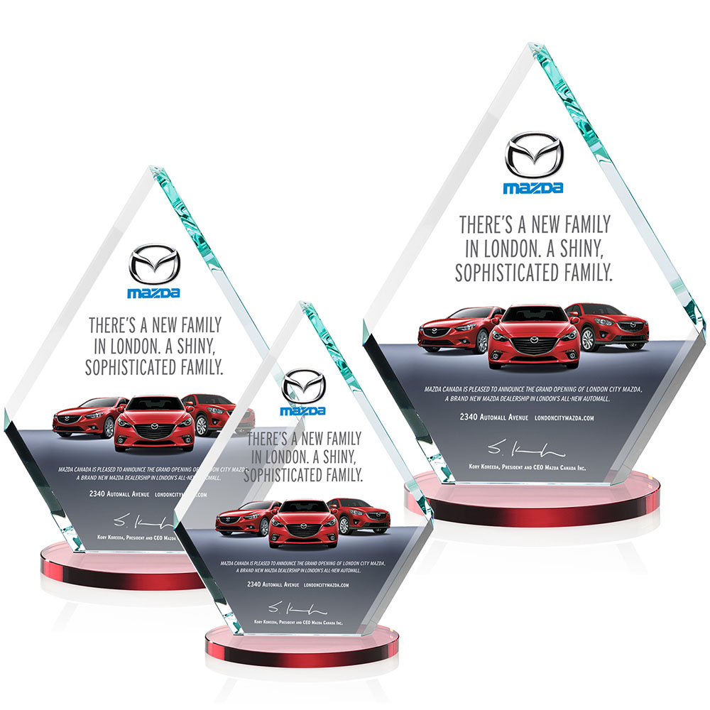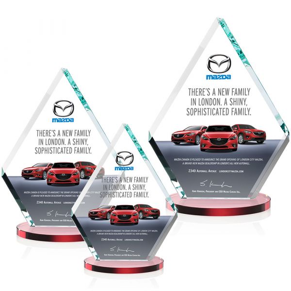 Our extraordinary double-sided beveled Starfire diamond award is combined with red crystal to update a classic look with chic style. Featuring our vibrant full color VividPrint imprint.