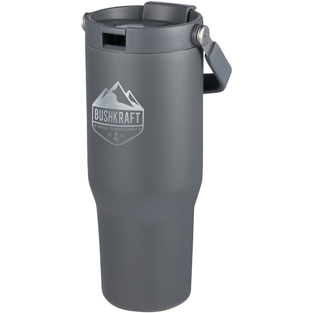 The Carnival 30oz Tumbler is designed to be fully functional for both hot and cold beverages. It's built-in flip straw offers convenient, effortless sipping. Snap the straw shut and you can chug from the flap-open spout! The integrated metal handle provides on-the-go convenience and makes the Carnival the ultimate travel companion. Durable, double-wall stainless steel vacuum construction with copper insulation allows your beverage to stay cold for up to 48 hours and hot for 12 hours. The construction also prevents condensation on the outside of the tumbler. On-trend, durable PFAS-Free powder coating. Screw-on, spill resistant lid with integrated straw and flap-seal closure. Wide opening for easy filling and pouring - perfect for ice cubes. Fits most standard car cup holders. 30-ounce capacity. Note: Drinking hot beverages with the straw is not recommended. Remove lid to allow beverage to cool. Double-wall stainless steel with copper vacuum insulation for ultimate temperature retention. Screw-on, spill resistant lid with integrated straw and flap-open spout so you can swig or sip. Fits most standard car cup holders. Crafted from 91% recycled stainless steel. Wide opening for easy cleaning and adding ice. Convenient carry handle. Cold for up to 48 hours and hot for 12 hours. Price includes one colour, one location imprint.