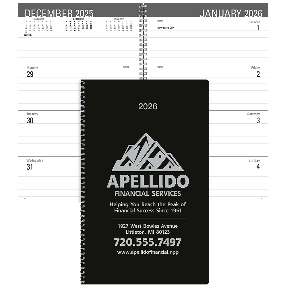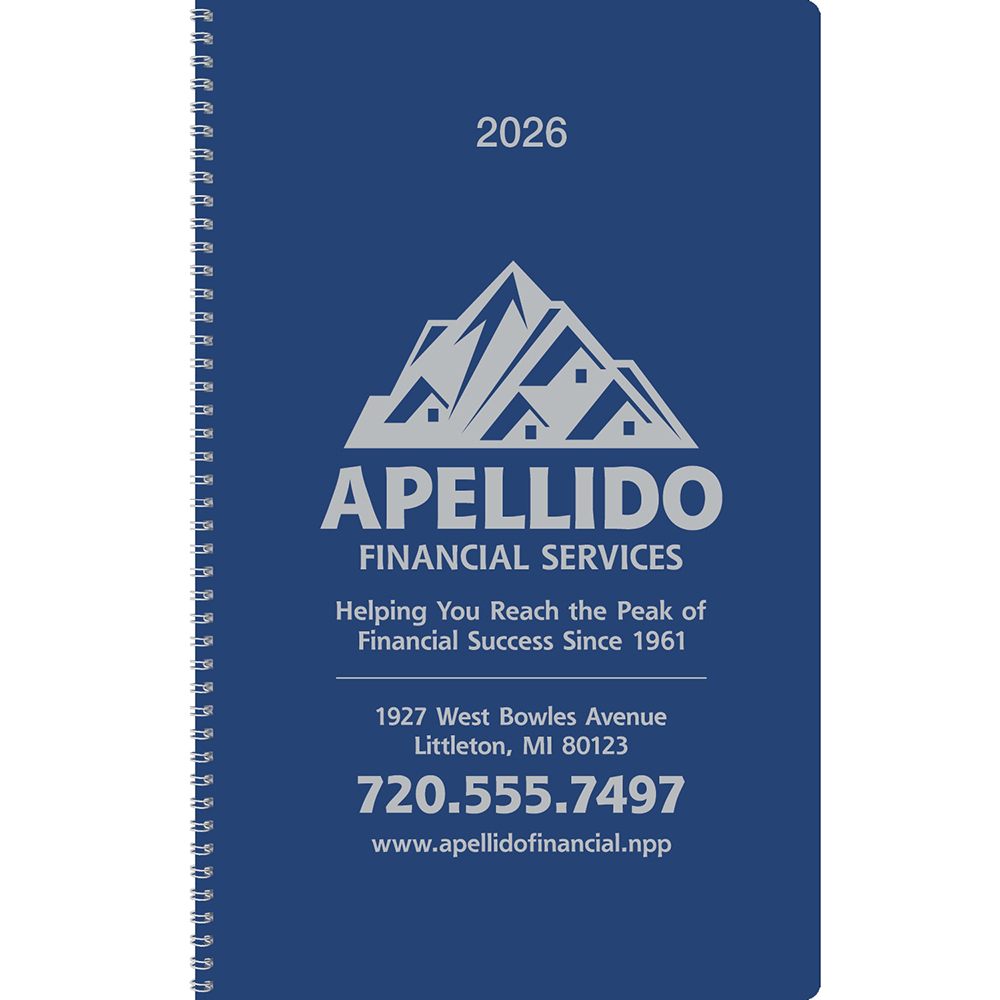 This planner features one week of daily memo space on each two-page spread. Useful tools are also included: a business expense ledger, United States Postal information and more. "2010" is included as standard copy on front cover. Price includes one colour imprint.