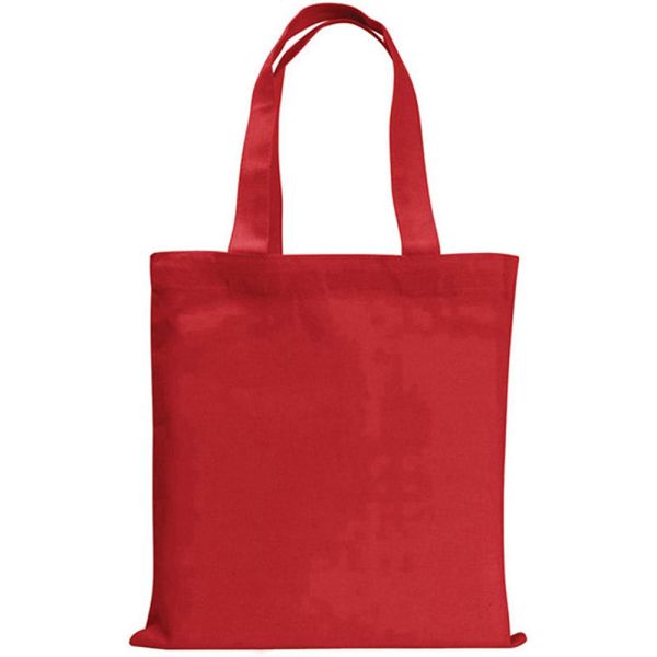 Colored Mini Economy Tote features sturdy elongated self-handles that are 13 inches long. Sturdy elongated self handles that finish at 13" long. 4 oz. Cotton. Price includes one colour, one location imprint.