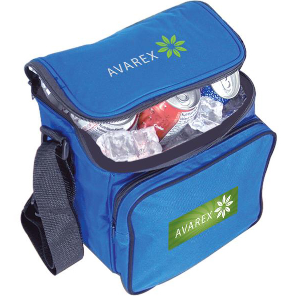 A personalized cooler bag with enough space for your chilled items on an outdoor activity. This product is made of 600D polyester. Heat-sealed leakproof clear vinyl metallic liner. Adjustable/non-detachable shoulder strap with plastic hardware. Outside dry pocket (8.5" W x 7" H x 1.5" D). Product dimensions: 9" x 9" x 8" - 0.88 lb. Holds six cans. Price includes one colour imprint, one location. Imprint dimensions: 6" x 5". Rush production orders are not available for customer pickup. Free art proof will be emailed with every order within one business day. Minimum order of 50 custom cooler bags in black and royal colours ready within 1 days. No duties, no fees!