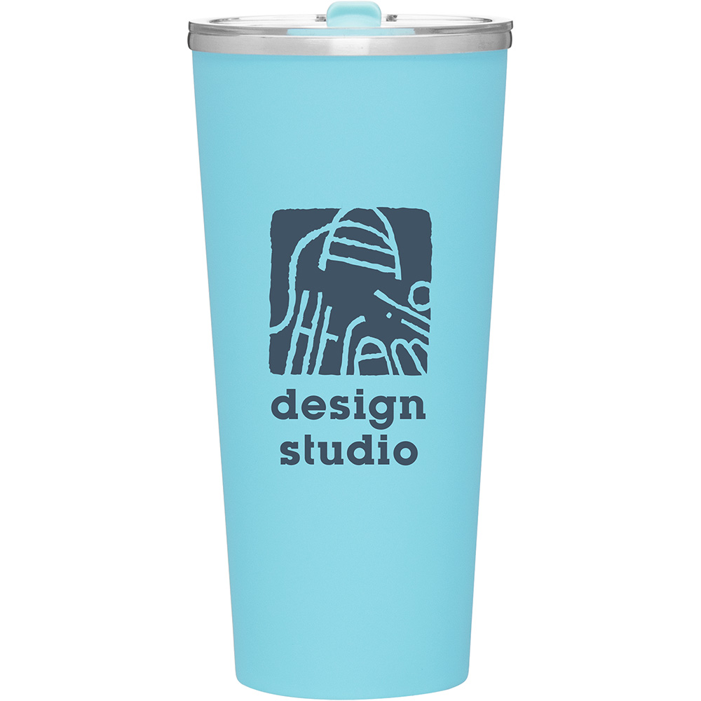 16.9 oz double wall 18/8 stainless steel thermal tumbler with copper vacuum insulation, stainless steel accent, ultra thin clear acrylic push-on swivel lid, and rubberized finish - gift box included. Price includes one color, one location imprint.