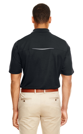 Screen Print, Fabric: 4.1 oz. /140 gsm polyester piqué. moisture-wicking, anti-microbial and UV protection performance. Features: matching flat knit collar. heat-sealed label. reflective piping at front and back for 360 degree visibility. side slits.