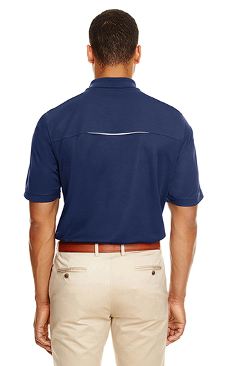 Fabric: 4.1 oz. / 140 gsm polyester piqué. Moisture-wicking, anti-microbial and UV protection performance. Features: Matching flat knit collar. Heat-sealed label. Reflective piping at front and back for 360 degree visibility. Side slits.