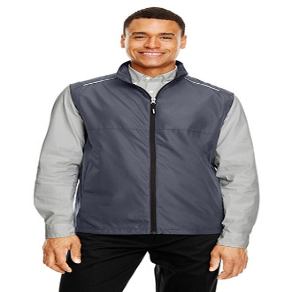 Fabric: 2.3 oz. /78 gsm 100% polyester pongee. water-resistant finish. Feature: center front reverse coil zipper with autolock slider and reflective toggle. lower concealed pockets with zippers. adjustable shockcord at hem. reflective piping at front shoulders.