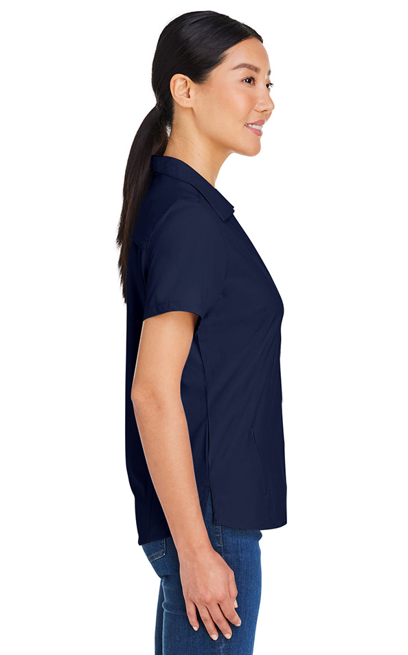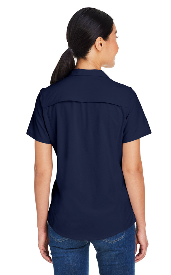 Fabric: Body: 4 oz/yd2 / 147 gsm, 88% polyester, 12% spandex ripstop. Lining: 100% polyester mesh Lining in upper back. Ultra UVP technology creates superior UPF 50+ sun protection with quick dry performance. Feature: Self-fabric collar with integrated collar stays. Right inseam pocket with invisible zipper. Side vents. Tear away label. Deco Eligible. Price includes embroidery.