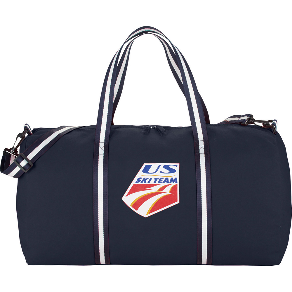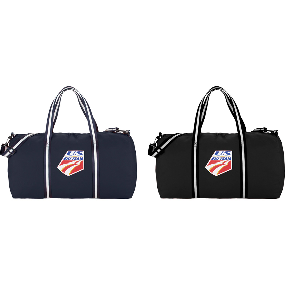 This iconic cotton weekender style is the perfect travel bag for your next adventure. Contrast stripe cotton webbing gives this classic a fresh look. Large zippered main compartment will hold all your clothes and gear. Detachable, adjustable striped cotton shoulder strap. Material: 12 oz. Cotton Canvas. Price includes one color, one location imprint.