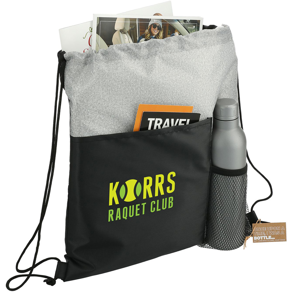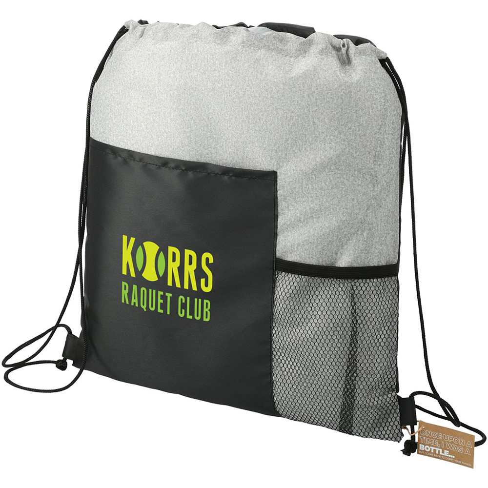Made from RPET, the Cycle RPET Drawstring Bag offers a sustainable, functional option. Open main compartment with drawstring closure. Front slash pocket with mesh water bottle pocket. Through a partnership with 1% For The Planet, one percent of sales of all EcoSmart products are donated to environmental nonprofits. Price includes one colour, one location imprint.