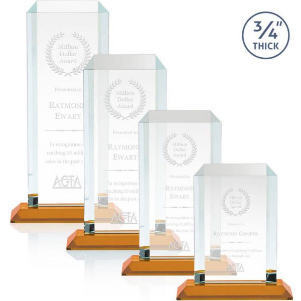 The Dalton Starfire Crystal Award features a thick 3/4" tower with mitered edges all around that create a sparkling frame for your message of recognition. Available with your choice of 8 distinct and vivid colored bases, the Dalton award radiates light throughout the room and showcases your special achievement. Price includes laser engraving.