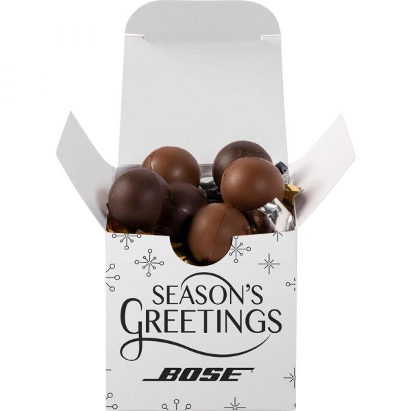 Perfect way to wish your staff a happy holiday season! A great gift full of delicious twist wrapped truffles. Fully custom box makes for a beautiful presentation! Box contains 10 twist wrapped truffles. Price includes full colour imprint.